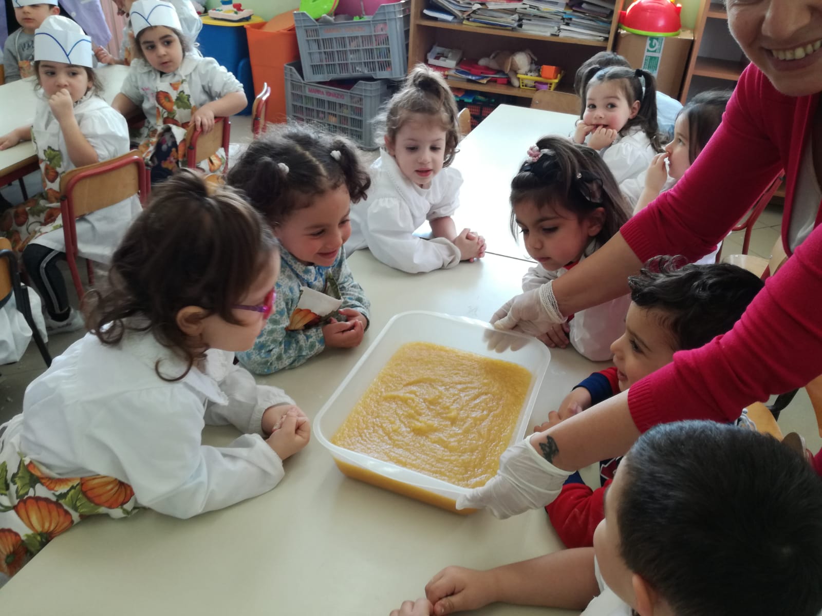Il 25 Marzo 2019 i bambini della Scuola dell'Infanzia hanno partecipato al Laboratorio "Dalla frutta alla marmellata" condotto dalla Fattoria didattica APEMAX di Santa Maria a Vico che con metodo artigianale ha trasformato la frutta in gustosa marmellata . L'obiettivo è quello di abituare i più piccoli al consumo della frutta sana e genuina.I bambini si sono cimentati,inoltre, nella preparazione di gustosi pancakes che hanno portato a casa insieme al diploma di piccolo chef e la marmellata preparata durante il laboratorio .