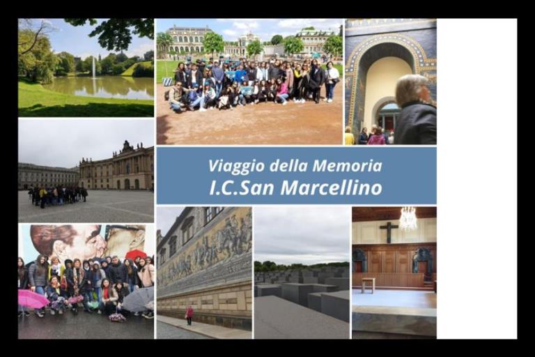 Ha inizio così un viaggio indietro nel tempo che si ferma a soli 70 anni fa, quando l’uomo si è trasformato in un carnefice spietato di altri essere umani, dove il male assoluto ha preso forma e ha seppellito un milione e mezzo di uomini, donne, bambini. Un viaggio voluto dall’amministrazione di San Marcellino e dalla Dirigente Scolastica Maria Amalia Zumbolo, per coltivare la memoria dei tragici eventi anche a fronte dell’assenza di memoria storica delle giovani generazioni, all’insegna della riscoperta dei veri valori e della tolleranza che ha consentito a 21 ragazzi meritevoli delle classi terze della scuola Secondaria di primo grado di vivere cinque giorni in Germania, per ripercorrere il dramma del nazismo. Gli alunni meritevoli , accompagnati dai docenti Garofalo Maria Carmela e Tonziello Rita, atterrati a Berlino, sono andati alla scoperta della città passando per la piazza del Memoriale delle vittime dell’Olocausto, memoriale situato nel quartiere Mitte di Berlino.Il Centro vuole rappresentare un punto di riferimento centrale per tutti i luoghi della memoria che si trovano sul territorio tedesco. Hanno visitato il centro storico passando per l’Alexander Platz, il check point Charlie, Bernauer Strasse, la porta di Brandeburgo, il Muro di Berlino e l’isola dei musei dove hanno potuto visitare il museo Pergamon, uno dei più importanti musei archeologici della Germania e del mondo dove gli alunni hanno potuto ammirare la porta di Ishtar dell’antica città di Babilonia e l’altare di Pergamo, ma anche la porta del mercato della città di Mileto. Terzo Giorno: partenza per Dresda, soprannominata la Firenze dell’Elba, con visita guidata del centro storico, dove gli alunni sono rimasti affascinati dalla chiesa barocca del Frauenkirche e dalla sua grande cupola, dal palazzo di Zwinger ispirato a Versailles che ospita musei in cui sono esposti capolavori come la “Madonna Sistina Di Raffaello”. Toccanti ed emozionanti sono stati i due giorni trascorsi a Norimberga. Il percorso si è articolato partendo dal cuore della città nel quartiere storico di San Lorenzo con l’omonima chiesa, i suoi palazzi e le sue fontane verso il fiume Pegnitz con il ponte delle carni e il macello medievale. Ci si è diretti, poi, verso il quartiere di San Sebaldo, dove abbiamo ammirato l’imponente struttura del castello e la casa di Dürer e infine la chiesa di san Sebaldo, nei cui pressi si trova l’antico municipio con la sua facciata rinascimentale. Il tour si è concluso nella piazza del mercato, dove si svolge il famoso mercatino di Natale nello scenario incantevole della chiesa di Nostra Signora e della Bella Fontana.